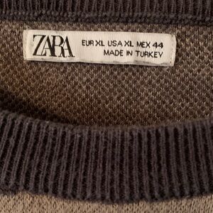 Zara Men's Crewneck Sweater in Black and Brown Stripes