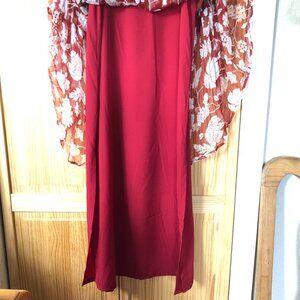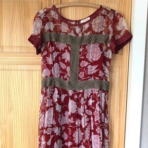 Beautiful flowy red floral & lace harness maxi dress. Red liner/slip is removable. EUC - I bought from Sundance new but only wore twice.