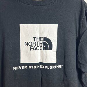 The North Face women's black cotton tee in XL size offers a regular fit with short sleeves, making it a comfortable and versatile top for any wardrobe.