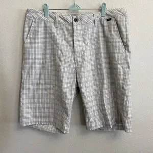 Travis Mathew Men's Gray Plaid Golf Chino Shorts Lightweight Casual Size 36 FLAW
