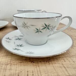 Noritake VINTAGE 60s Midori Japanese Porcelain Saucer Tea Cup Set Bamboo 6113 M2