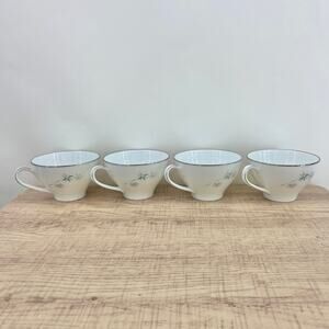 Noritake VINTAGE 60s Midori Fine Japanese Porcelain Saucer Plate and Tea Cup Set of 4 Painted Gray Green Tan Bamboo 6113 M02
