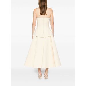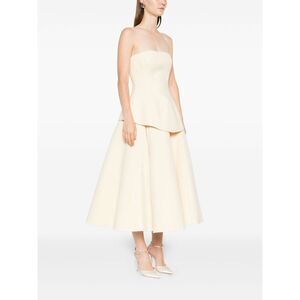 : beige strapless peplum detail a-line skirt concealed zip fastening panelled construction