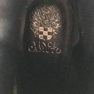 Vince Camuto Fetter Laser Cut Bootie Pull on, Heel, Winter, Fall, Spring, Summer, Casual, Minimalist Charcoal Laser Cut Detail Around Top Pull On Back Zipper Closure Tassel Detail on Zipper in Back Ankle Bootie Leather Little Distressing throughout Excellent preowned condition. No flaws. Approximate Measurements: Heel: 3.5”