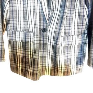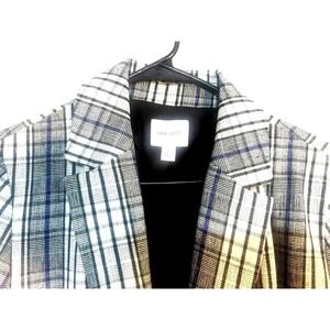 Nine West Women's Plaid Blazer Jacket Large Cream Navy Single-Button Check Chic