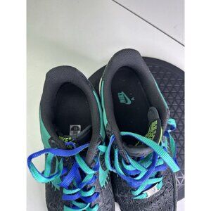 The Nike Air Force 1 Godzilla Atomic is a low top sneaker featuring a unique design inspired by the iconic character Godzilla. The shoe is predominantly green in color, with atomic teal and anthracite accents, giving it a vibrant and eye-catching look. Crafted with leather upper material and designed for athletic activities such as basketball, this Nike Air Force 1 model is a stylish and functional choice for casual occasions. With its lace up closure and comfortable fit, this shoe is perfect for men looking to make a statement with their footwear.