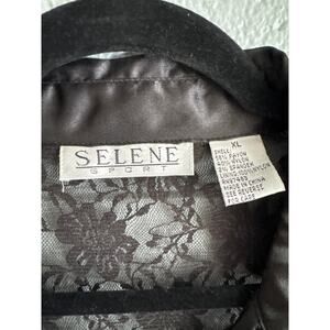 Vintage Y2K Women's Satin Lace Button Front Mesh Top size XL Whimsigoth Witchy