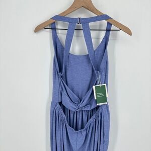 • Up for sale - Halara jumpsuit womens large u neck pocket harem casual -easy peezy edition nwt twist back active leisure backless blue purple workout stretch • Size: women's large • Condition: nwt • Ships out quick • Check out my other listings for more amazing things!