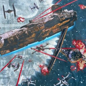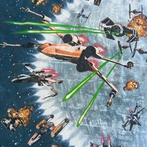 VTG Rare 1997 Star Wars Liquid Blue Tee Mens XL AOP Millennium Falcon Death Star