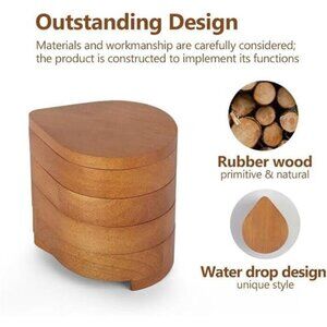 Compact Design: Comes in a portable size: 4.92*3.94*4.72in; Shaped like a water drop. Can be held by hand and easily placed inside your handbag or luggage. Crafted from rubber wood, this jewelry organizer is unique and beautiful, and adds elegance to your home decor.