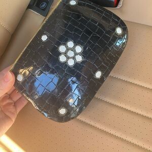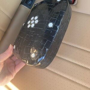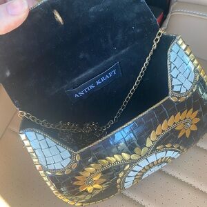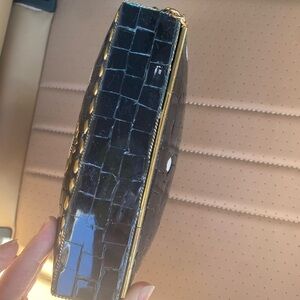 This elegant clutch features a stunning black and gold design, perfect for any occasion. Its intricate pattern adds a touch of sophistication to your ensemble.