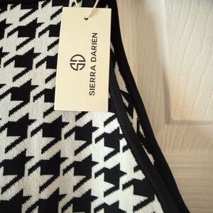 Step out in style with this elegant black and white houndstooth mini dress. Its classic pattern and modern cut make it a versatile choice for any occasion. Never used tag size L