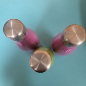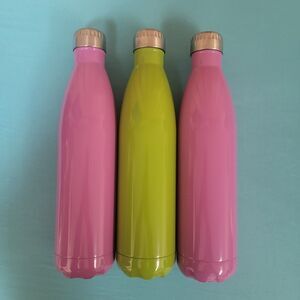 Lot Of 3 HD Designs Stainless Steel Water Bottles 12.5" Tall Green Pink New