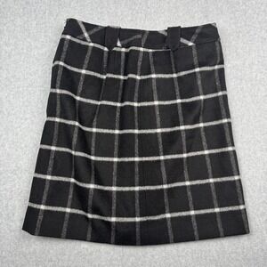 Talbots Skirt Womens 6 Black White Wool Blend Windowpane Plaid Work Fall Mini