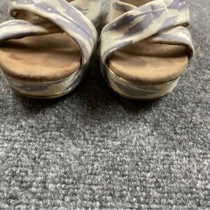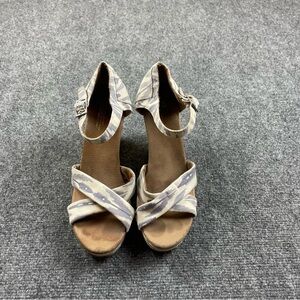TOMS Women’s Blue/White Aztec Print Canvas Wedge Sandal size: 10