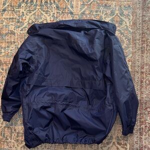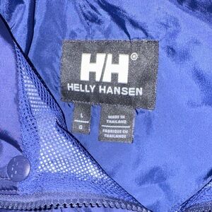 Experience ultimate protection with this Helly Hansen Seven J hooded rain/wind jacket Durable and water-resistant. Ideal for rainy or windy days. Navy blue 100%Nylon 4 pockets two upper two below. Preowned like new condition length= 31” pit to pit = 25”