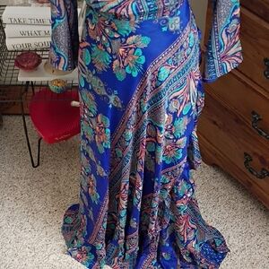 Beautiful Cienna Dress long and flowy beautiful pattern and shine light material. gorgeous dress.