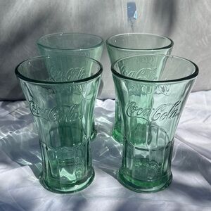 Classic Coca Cola glasses in a refreshing green hue. Ideal for serving drinks in style.