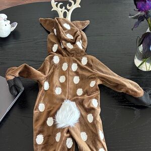 Bought off Target.com BABY brown deer costume for 3/6 month baby size, perfect for dress-up and play. Features a cozy design with antlers and a fluffy belly. **worn once shortly for one pic **