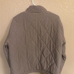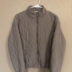 Light gray/taupe jacket with a zip closure. Comfortable and stylish. “Driftwood” color