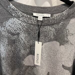 NWT Chico's Pullover Sweater Silver Gray Foil Intarsia Size 4 / XXL Shiny