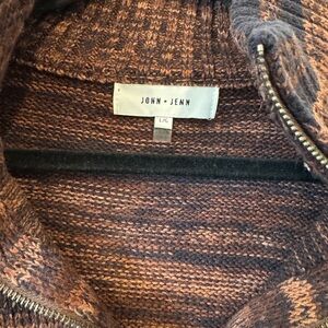 Stay warm and stylish with this cozy brown patterned halp-zip. Perfect for any casual outing.