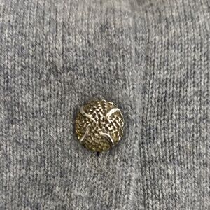 Stay cozy and stylish with this elegant gray sweater. Featuring intricate button details, it's perfect for any occasion. In good condition.