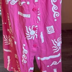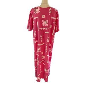 Vintage Cotton Connection Pink Sun Print Maxi Shirt Dress XL Artsy Unique Retro