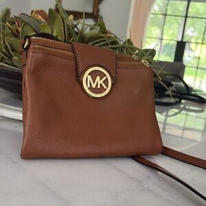 Michael Kors Leather Tan Saddle Brown Crossbody Bag bifold