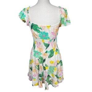 Cleobella Tropical Floral Leafy Smocked Beachy Boho Short Sleeve Mini Dress