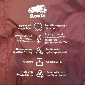 ROOTS Down Fill Winter Coat Puffer Jacket Lightweight Packable Oversized.Medium
