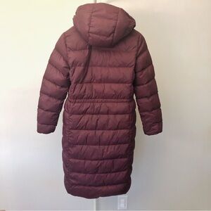 ROOTS Down Winter Coat Puffer Jacket Maroon Lightweight Packeble Oversized Minimalist Contemporary long Puffer Jacket