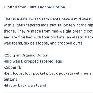 Grana Organic Cotton Twisted Seam Tapered Pants Size XL organic sustainable NWT