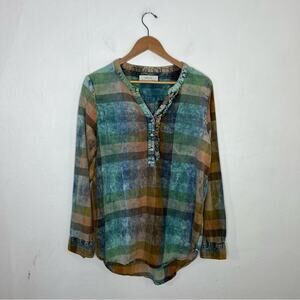 Anthropologie Isabella Sinclair Ruffled Plaid Henley Top Size Medium