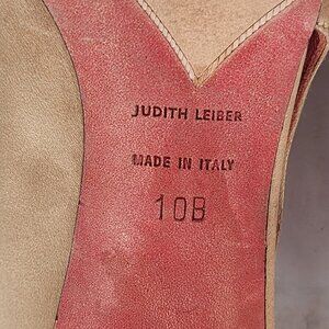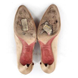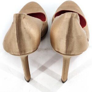 JUDITH LEIBER Tan Satin Pumps Heels With Amethyst Jewel