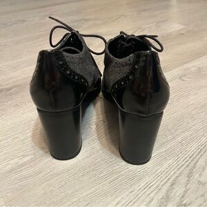 Chic black Franco Sarto Oxford Heels size 8 with a glossy finish. Perfect for versatile styling. Last picture shows small marking on one of the heels