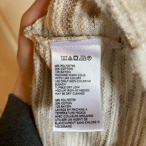 Silence + Noise Anthropologie Cream And Tan Mock Turtleneck Short Sleeve Sweater