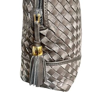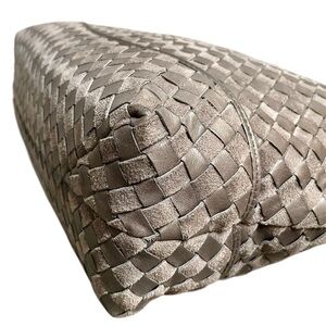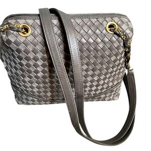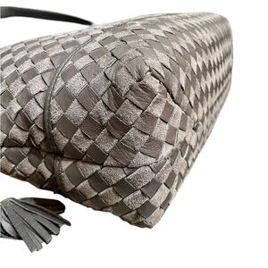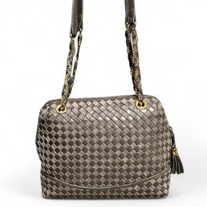 Bally Gray Woven Leather & Suede Vintage Intrecciato Double Strap Shoulder Bag