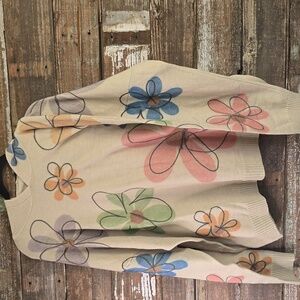 Floral Patterned Cream Sweater W/Multi Color Daisies, NWOT. Plus Size 2X