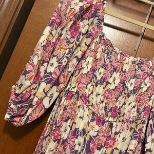 Step out in style with this elegant floral long sleeve dress. The vibrant blend of pink and purple hues adds a touch of sophistication to your wardrobe.