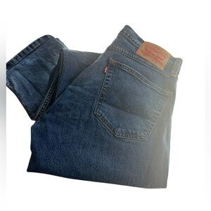 Timeless Levi's straight jeans. Versatile blue denim. Ideal for everyday wear.