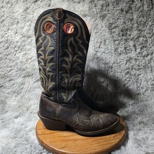 Vintage Tony Lama Mens 13D Buckaroo Leather Western Tall Shaft Embroidered Boots