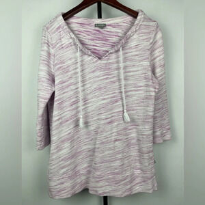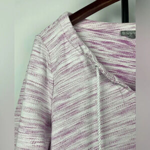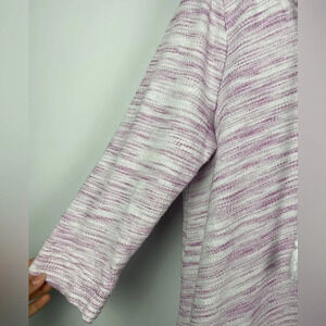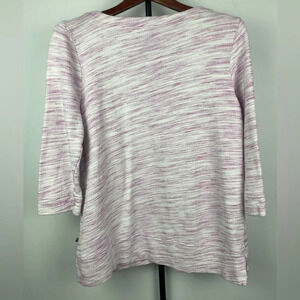 T by Talbots Purple White‎ Textured Cotton Pullover 3/4 Sleeve Summer Sweater