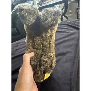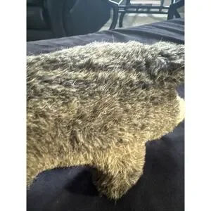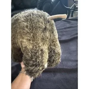 The Steiff Wutzi Wild Boar Plush is a small stuffed animal made in Germany. With a unique feature of a button in its ear, this brown-eyed plush is perfect for collectors or children who love stuffed animals. The attention to detail, such as the tusks, adds to the realism and charm of this adorable Wild Boar. Perfect for snuggling or displaying, this Steiff plush is sure to become a beloved companion for any child.