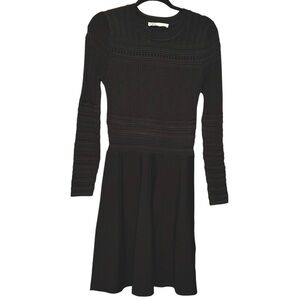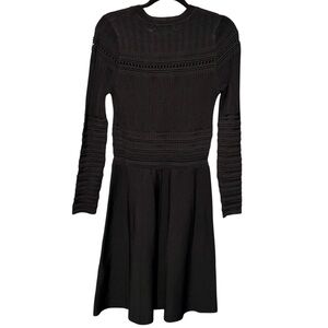 ZARA Rare Textured Open Weave Long Sleeve A Line Black Ribbed Dress