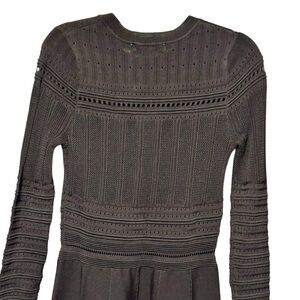 ZARA Rare Textured Open Weave Long Sleeve A Line Black Ribbed Dress size Large