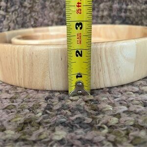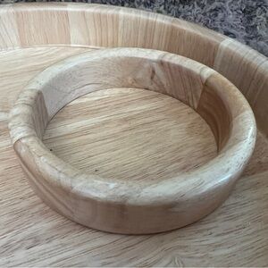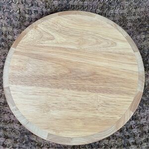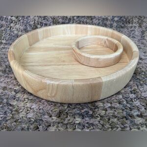 12” diameter, Chip And Dip wooden serving tray, small crack in the wood, 2 white marks but will come out but still in good condition. 2” tall.