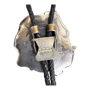 Large Artisan Crafted Tigers Eye Sterling Silver Bolo Tie Southwestern Signed 76