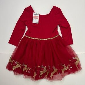 Zunie Christmas Red Glitter Reindeer Long Sleeve Dress Size 4 NWT