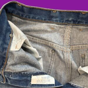 High-rise 90s Wrangler jeans with a full straight leg and a dark wash finish. Fading and whiskering across the thighs and knees give it an authentic vintage look.